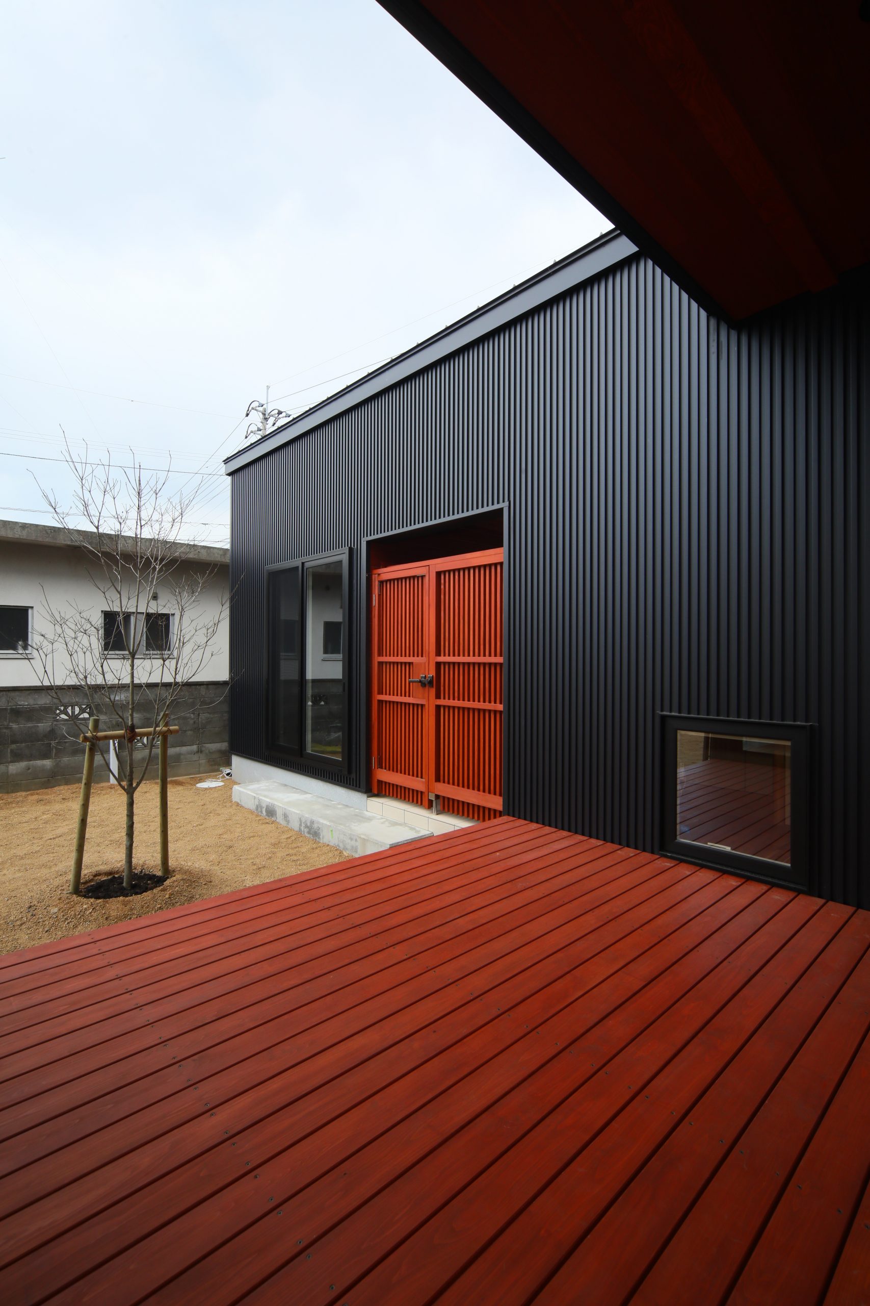 家族が過ごす母屋とご主人の趣味の部屋を、通り土間を介して繋ぎ、 ご家族のプライバシーを守りながら良い距離間を保っています。©R+house